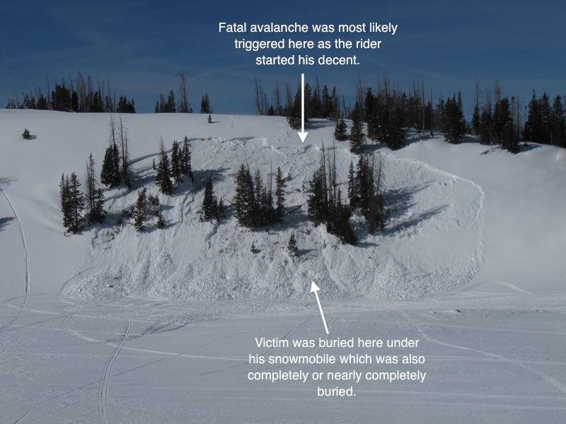 Our thoughts and prayers go out to the friends and family of James Childs, a 30 year old snowmobiler who was killed in an avalanche accident Friday Mar. 1st on the southern end of the Manti-Skyline. We visited the site and our investigation is posted here.