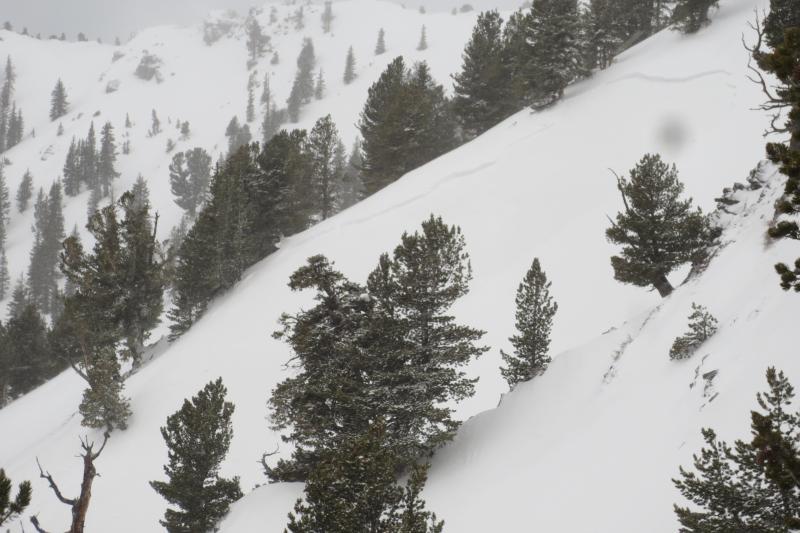 We received a report of one skier unintentionally triggered avalanche in steep east facing terrain in upper Days Fork. It was triggered as the skier was ascending the slope as he was heading for Main Days. He was briefly caught in the 8 inch deep slab and was able to self arrest before going for a ride.