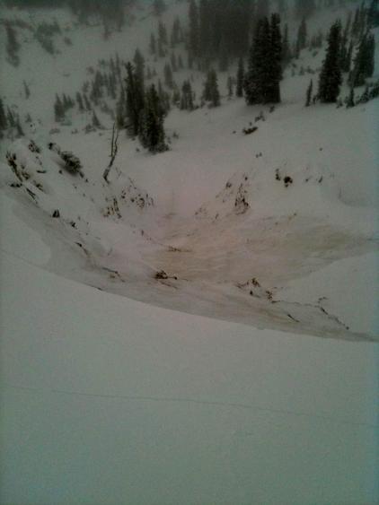 Looking down one of the slides. While not running full track, debris looked to be piled up decently against the first large trees.