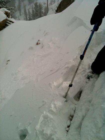 Easily triggered 3 slides in the Rocky Point chutes, by standing at the top and kicking soft wind pillows. All failed on facets, an