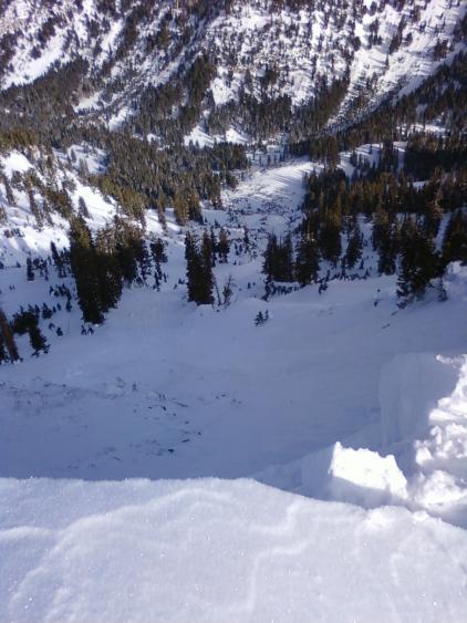 I am glad this small cornice set it off (glad it was so sensitive). I think that the rocky bed played a big role. we went up and down the ridge and tried to get some others to go. the cornices were very small (20 pounds), maby slightly less steep, and maby a different bed, coudnt get em to go.