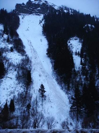 Another sizable slide in AF further up the road near Tibble Fork Reservoir. This is the Tibble Towers Chute and it ran 1000' taking out some small trees and branches before ending in the creek.
