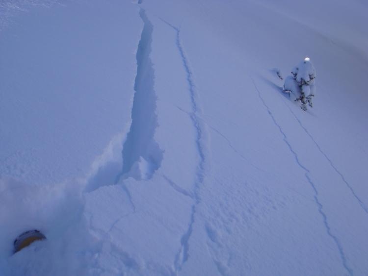 First pocket we got new snow 12" deep 150' wide running 300' with a skin cut.
