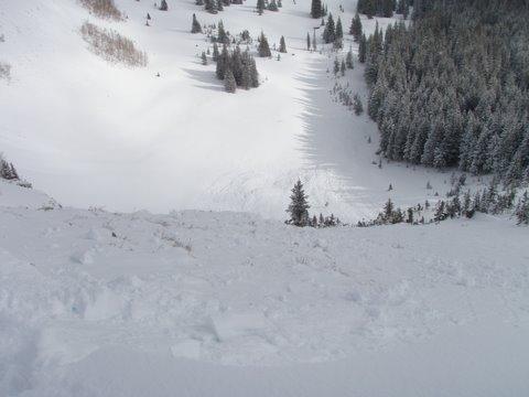Intentionally triggered from cornice drop. Failed in facets near the ground below mid October crust. Ran a good distance into