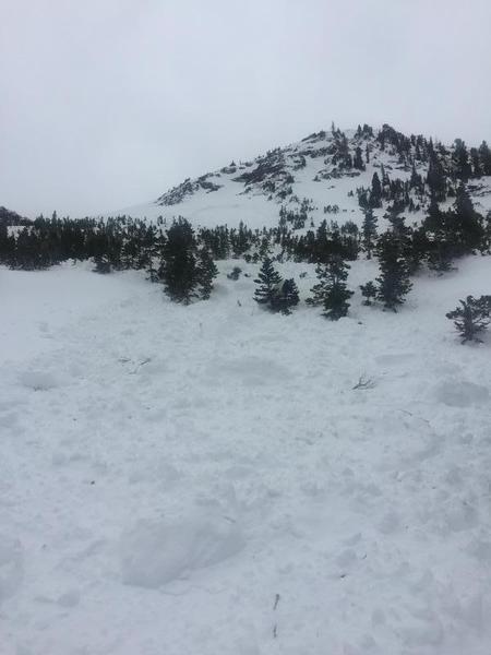 I triggered a windslab / hardslab while skiing left from the bottom of the room of doom today. It broke about 50' above me and luckily the slab stayed together long enough for me to ski 30' or so off of it while it was moving. The crown didn't look that large but the size and power of the debris makes me think it was at least 18-24" deep in some places. It ran 300-400' vertical feet. I think I'm lucky to have skied off it and that my partner wasn't caught, since in hindsight we weren't spaced out as far as we should have been. We should have had our guard up more today given all of the strong winds from various directions over the last several days.