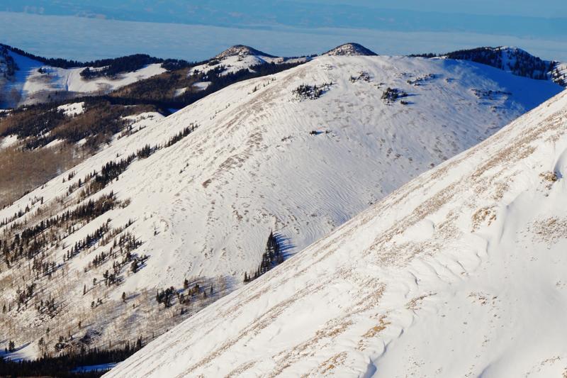 Very clear wind-loading of this slope, notice the dramatic change in snow depth.