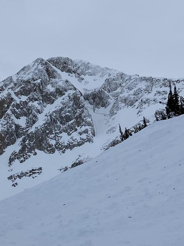 Aside from recent avalanche, we saw wind loading on many east and northeast aspects as this storm was coming in. Some of the steep lines up in the basin had obvious signs of large avalanches, but this was not clear for all. We opted to stay off steep stuff and ended up skiing a lot of wind blown snow, but found soft stuff on most of the low angled east aspects.