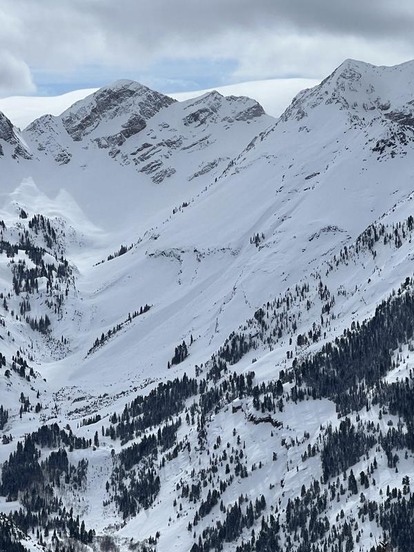 Saw this avalanche in Broads Fork from the Neff''s / BCC ridge. Not sure of trigger but there were several skiers in / around the path and debris.
