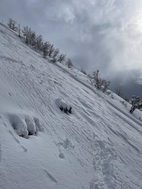 Two wet slides popped and went a ways. Snow was reactive after some warming from the sun and then a cut on any steep rolls.