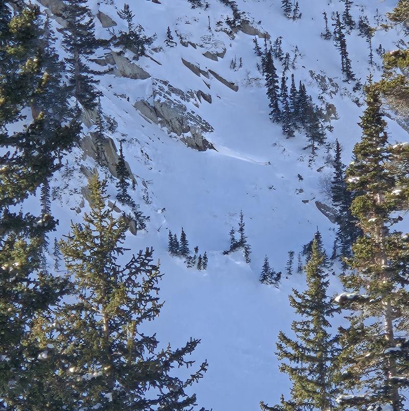 Next door to the red pine avalanche from a few days ago. Lower on the ridge where it rounds to NE. I likely just missed it when I was up on the 6th. Better light today. This one also was partially covered by recent wind blown snow. Not as deep as the former. Slab popped out higher on the ridge and then another along its path looked to have released sympathetically.