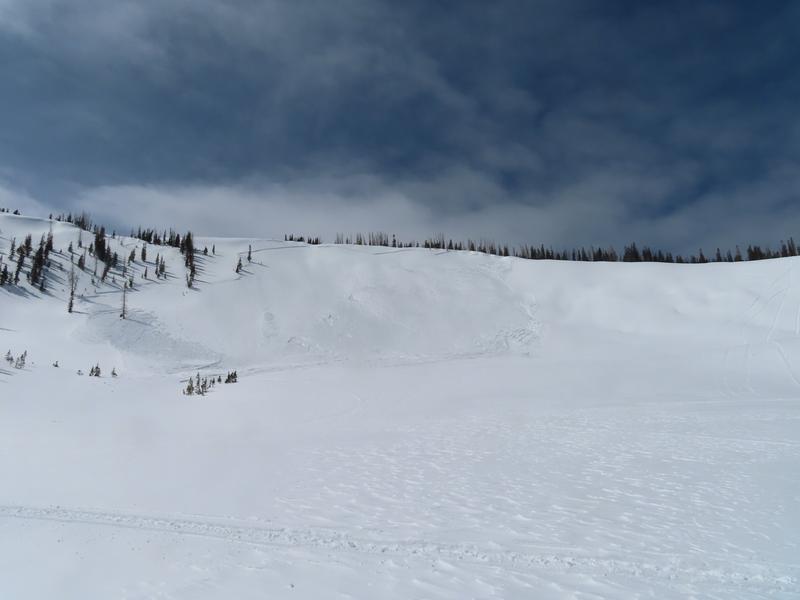 Failure occured just within the old snow on a layer of decomposing stellers and grauple above a 4F hard temp crust or wind crust. Most likely overloaded by wind loading into the bowl.
