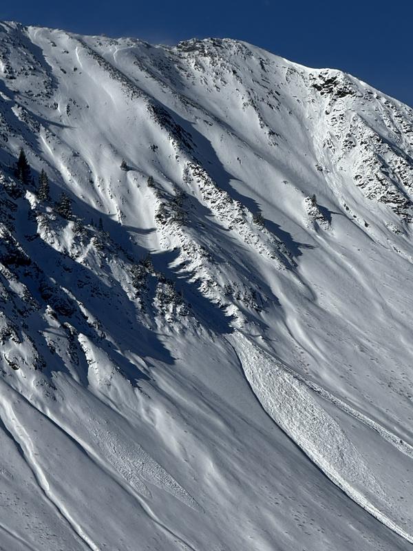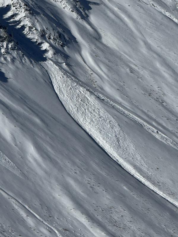 The info given is for the Cardiac Ridge Slides. Figured we might see a little action on the ridge after seeing a animal triggered slide on High Rustler at Alta this morning. There were a couple slides outta of the NE facing chutes off the top of the Ridge. Makes sense because those chutes have been harboring old faceted snow for a few weeks now. They most likely got overloaded by the NW winds that were cranking this morning and moving a fair amount of snow, most likely cross loading the NE facing chutes. Photos: Cardiac slides and the one at Alta