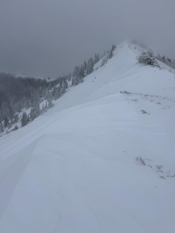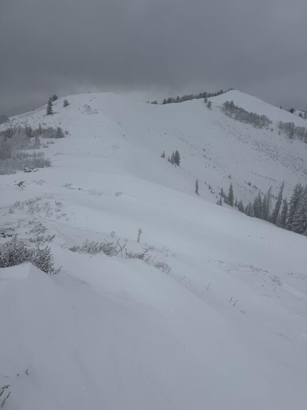 Headed up to S Monitor for the first time this year, knew there was old faceted snow on the more northerly portions of the bowl. The wind was cranking super hard loading most of the new snow from the southerly facing slopes into S Monitor. Noted natural avalanches that had occurred earlier on in Katie’s Trees, and some of the N facing terrain in the main bowl. The slides appeared to be patchy and not connected but the wind was cranking so hard and the visibility was not very good on the exposed ridgeline. We experienced cracking and collapsing through the day, and there was a large quantity of dense snow being loaded onto the polar aspects. Noted slides photos due to lack of visibility but in the video you can see the debris pile in the trees, we could also see debris on the more northerly part of the main bowl. Photos of S Monitor and Scott’s Bluff.