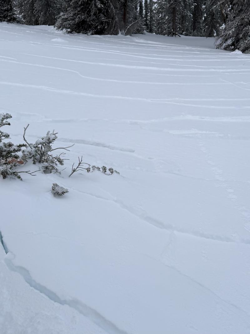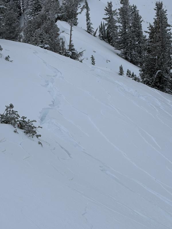 Hiking the ridge to Cardiff Peak from Cardiff Pass, staying off of anything North facing we remotely triggered the northern facing slope that is the general skin track path to Superior. Part of the slope slid, part had many cracks. Definitely touchy on North as all others have shown.