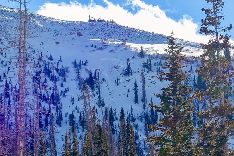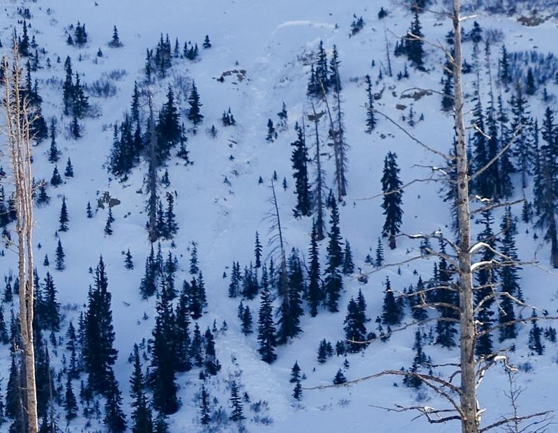 We experienced cracking and collapsing all the way up the ridge and knew sooner or later we would find a pocket. This hard slab avalanche was intentionally triggered remotely on a ridge and failed 1-2 feet deep into old November snow. Taking a ride in an avalanche like this one would be pretty rough.