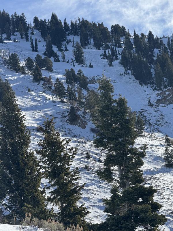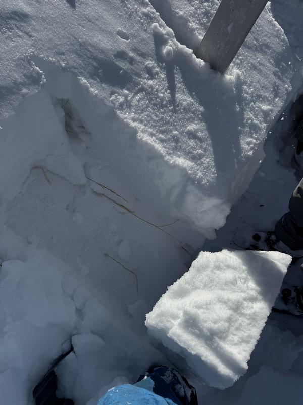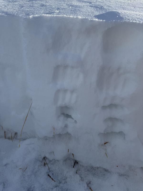 Pics show the crowns (zoom if you can) to the left and right of the cliff outcropping/trees (I think it trends downhill from left to right) (also could be 2 slides..) , a block, and some layers, snow was fist from the top transitioning to 4 finger old sun crust 8 inches down, then an icy rain crust at like 18" , with big facets on both sides of the crust/fist hardness. See the video.