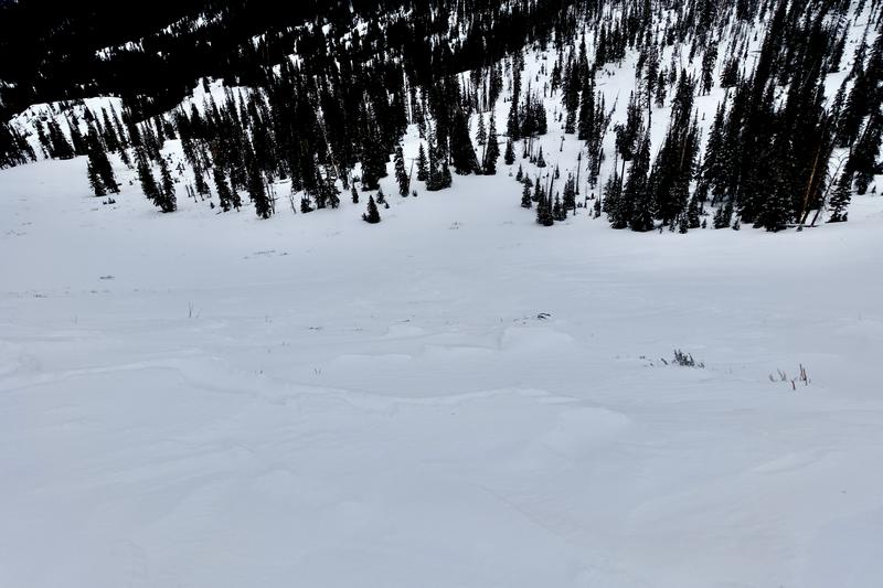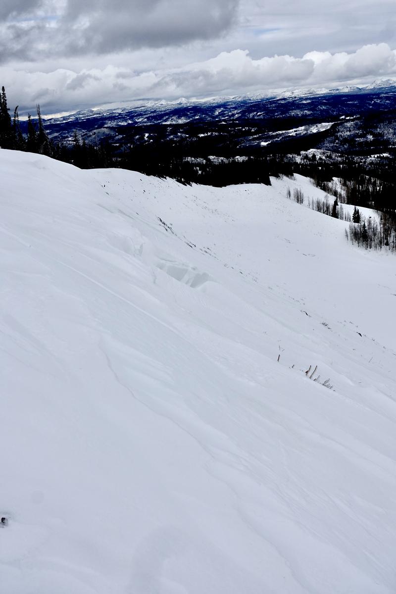 Avalanche observed 20251225, likely occurred last weekend, around the 20th or 21st. Some snowmobile tracks were below, so it's possible this avalanche was triggered remotely and not reported - the debris does look to be as old as the tracks. Bridging the gap between a cornice fall and a persistent slab, this chunk of wind drifted snow did gouge out down to faceted snow below.
