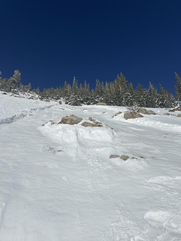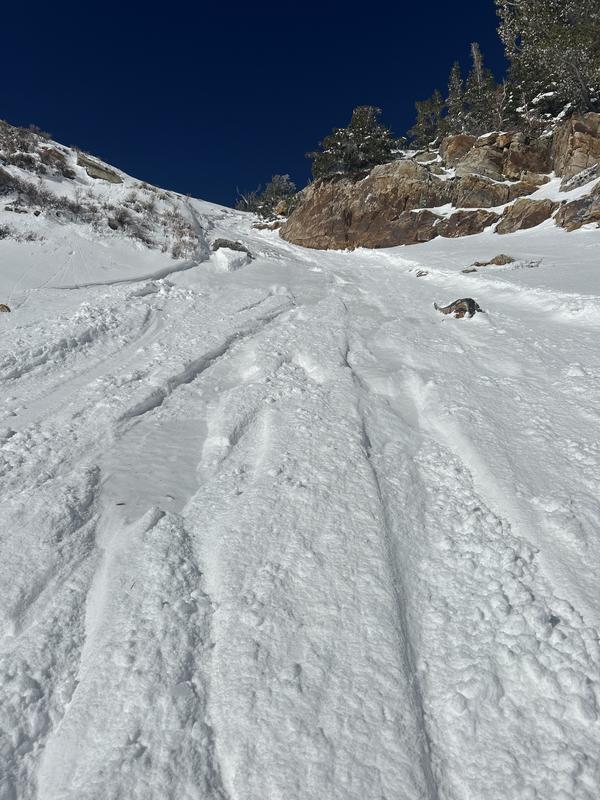 Poor decision making and ignorance led us to going up superior south face today, got up and saw the slide from yesterday, so cut back skier right. Made a bunch of really nice stable turns for a while, then lower down, as it was starting to warm up, we started to really feel the ice sheet below the new snow and started looking for alternate routes. We traversed out skiers left, and while traversing, triggered a slide on some warmer new snow over the ice sheet, resulting in one of us getting carried around 100 feet, through a gully, managing to stop before the slide stopped, as it continued for around 50 more feet. The other two members of the party found an alternate way down, causing two other more minor slides. Not great conditions on superior right now