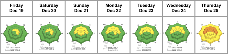 Summary: Atmospheric rivers stormed through the West, but generally stayed to the north of us. Over the week, we experienced record or near-record temperatures along with moderate to strong winds from the west, but at least we did pick up a few inches of very dense snow - derisively referred to as “graupel slush” - Friday into Saturday. The overall avalanche danger tilted between LOW and MODERATE with the primary concerns revolving around the buried early season PWL of facets; soft slabs of wind drifted snow; and wet avalanches (wet sluffs). Christmas Day dawned with a CONSIDERABLE danger with the anticipated storm.
