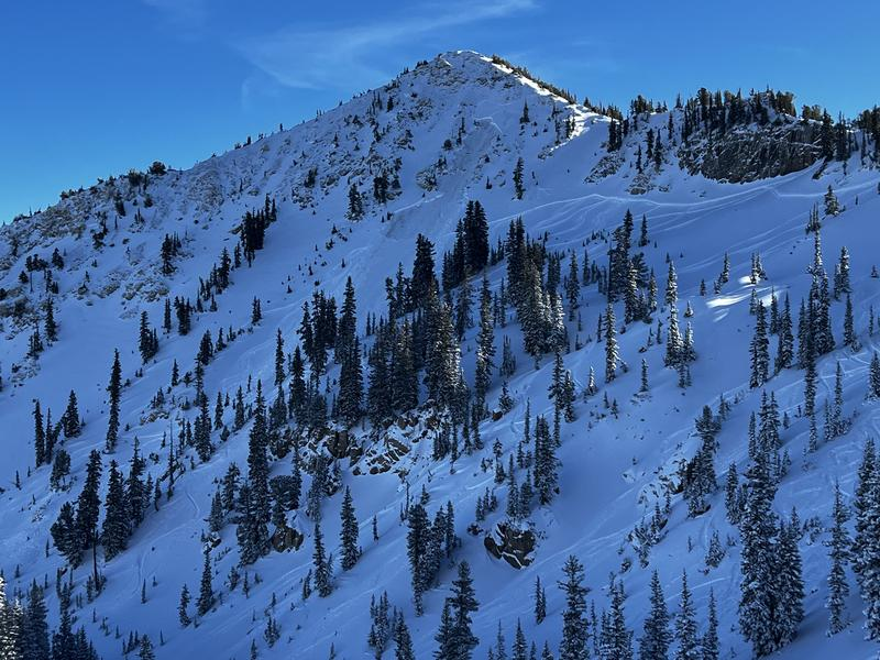 Summary: We were still reeling from the Grinch storm on Christmas Eve, which brought an inch of rain to nearly all elevations, with an inch of snow to show for it at higher elevations. Rain crusts caked the Wasatch, with lenses one to three inches thick. Not to be counted out, Santa finally arrived on a cold front Friday night..with storm totals of 6-12” of low density snow by early Sunday morning. The cold smoke sluffed easily on the bullet-hard crusts, but forecasters were still wary of the old PWL of facets buried 2-3’ deep. As proof of concept, a skier on Sunday triggers a hard slab that steps to this PWL in the Alta-Brighton backcountry on Sunset Peak, 2-3’ deep and 80’ wide. The overall danger was MODERATE for much of the week, with the primary concerns revolving around loose dry, loose wet, pockety wind slabs and the low probability - low consequence hard slab failing on the PWL. Another avalanche stepped to the ground likely on Tuesday in Hidden Canyon in the Brighton backcountry. Late week, a warm and wet storm impacted the state on New Year’s Day, bringing rain (again) to near 9000' and about 6" at the higher elevations.