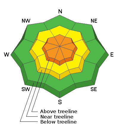 Today the avalanche danger is CONSIDERABLE on steep, upper elevation slopes that have recent deposits of wind drifted snow. Avoid slopes with a smooth rounded appearance or that show signs of instability such as cracking in the snow surface. There also remains an isolated, or MODERATE danger for avalanches stepping down 2'-4' deep into buried, persistent weak layers of loose, sugary, faceted snow. Northerly facing slopes with steep, rocky, and more radical terrain are the most suspect for this type of avalanche.