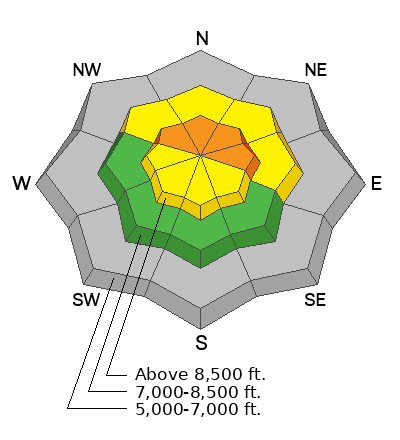 This morning, it's 35° F at the Tony Grove Snotel at 8400 feet, with 26 inches of total snow. Overnight, the station reported some precipitation, but no new snow. Winds were sustained from the west, gusting over 40 mph, but there was little drifting.