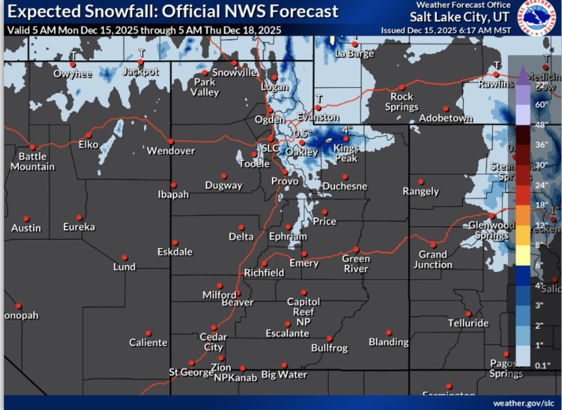 A more wintry weather pattern will develop in the latter half of the week. Snow is likely at upper elevations on Wednesday, with 3 to 5 inches of accumulation possible. Another 2 to 4 inches could accumulate on Thursday. The weather pattern appears to stay active, and snow is likely at upper elevations every day through next weekend. The primary uncertainty centers on the elevation of the rain-snow line, and the jury is still out on whether it will be a snowy holiday in Cache Valley.