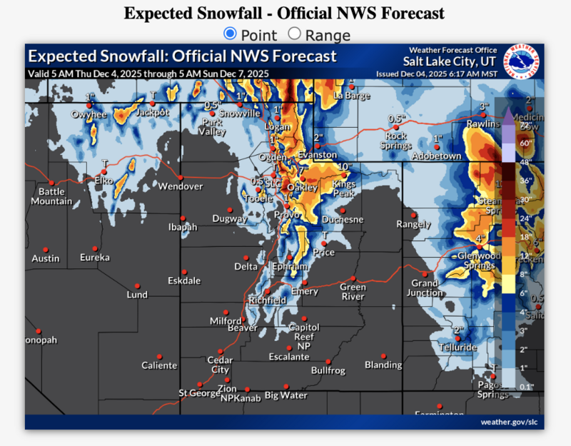 *This from this morning's NWS forecast discussion: "A significant winter storm will impact northern and central Utah late Thursday into Sunday morning. The potential for unsettled weather continues through the middle of next week."