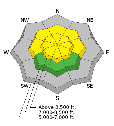 In the Logan Zone: Expect snow in the mountains today, heavy at times, with 5 to 9 inches of accumulation possible on upper elevation slopes. High temperatures at 9000' will be near 28° F. Winds out of the west will blow 10 to 14 mph. Tonight, the snow could be heavy at times, and we can expect widespread blowing snow, with 9 to 13 inches of accumulation possible. The temperature will rise to around 29° F by 5 am. It will be quite breezy, with winds from the west-southwest 20 to 24 mph, and gusts as high as 46 mph.