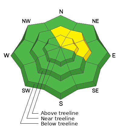 An isolated or MODERATE avalanche danger exists on steep, wind loaded slopes near and above tree line that face N-NE-E. In these areas, human triggered avalanches failing on a persistent weak layer of sugary, faceted snow are possible.