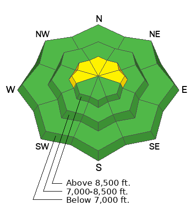 Our locator rose shows where this PWL exists: mid and upper elevation aspects facing northwest through northeast, including upper-elevation aspects facing west and east. A common theme from the three observations is that, although the PWL is present, it is currently not a widespread problem as we lack a slab on top of the facets, but with heavy, dense snow and strong winds forecasted, expect a rising avalanche danger as we place a load on top of this PWL.