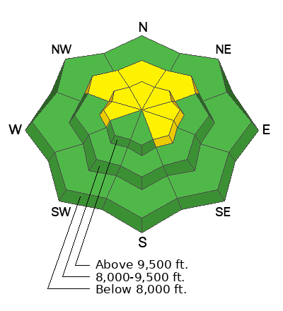 A MODERATE avalanche danger exists on steep west-through-north-through-east aspects at the mid and upper elevations, as well as upper-elevation southeast slopes, where it’s possible to trigger a 1–2 foot thick slab failing on old October–November faceted snow (persistent weak layer).