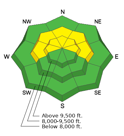 Under mostly cloudy skies, temperatures at 11,000' have cooled into the 30s °F, down from yesterday's highs in the 40s. The wind is blowing out of the SW and is currently 10–20 mph with gusts into the 30s along the highest peaks.