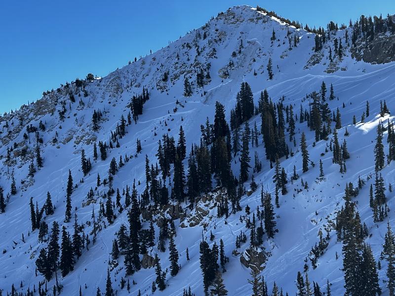 On Wednesday, a backcountry skier slipped while skinning the ridge from Cardiff Pass toward Cardiff Peak. The slip led to an uncontrolled slide-for-life, and he slid to the north over the cliffbands into Cardiff Bowl. With the help of SL County SAR, WBR, DPS, Unified Fire, Life Flight, and Powderbird, the injured man was air-evac'd to the valley. While this accident was not avalanche-related, it is a significant event and a telling of the Christmas Eve rain crust's impact on conditions in the backcountry.