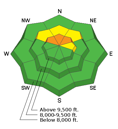 A CONSIDERABLE avalanche danger exists on slopes of 35 degrees or steeper on northwest, north and northeast facing slopes above about 9000'. Outside of that terrain, the danger is LOW.
