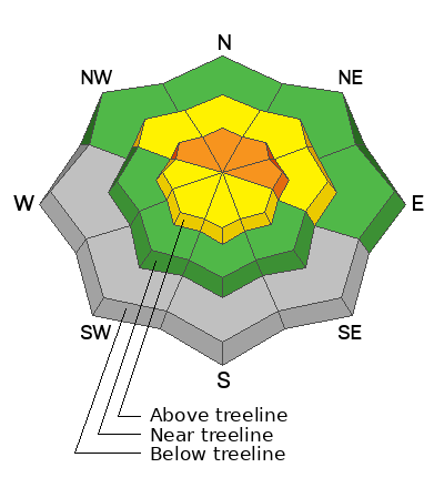 Forecast - Look for mostly cloudy skies with high temperatures climbing into the upper 40's °F. Relentlessly blowing from the southwest, wind speeds average in the 30 mph range with gusts in the 50's and 60's near the high peaks.