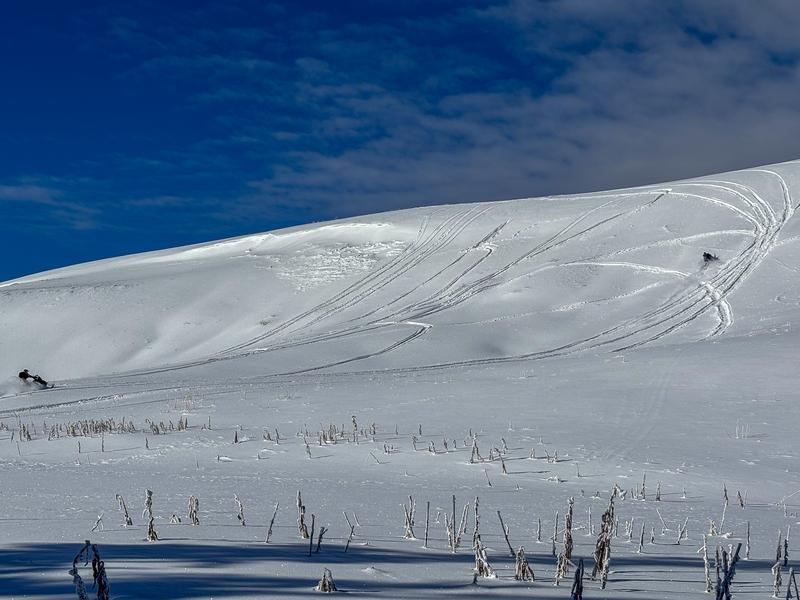 Travel Conditions - Snow depths across the range average 1-3 feet, the deepest near the North Slope and Mirror Lake Corridor. It's a mixed bag of snow quality and conditions, but we finally have enough coverage to get out and travel. Roadside attractions are finally starting to come into play with the best riding existing on lower-angle, upper elevation, wind-sheltered terrain. The pack is still extremely thin, and getting jammed up by stumps, rocks, and logs lurking beneath the surface is still a huge concern.