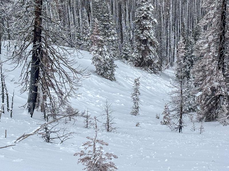 Some slopes avalanched naturally during the storm like the one above on a north slope at 10,000', breaking 1 foot deep into weak snow at the ground.