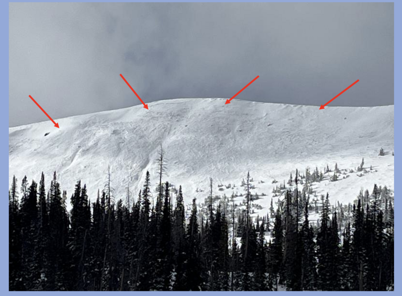 Ted took the sled out for a rip in the Whitney Basin and reported this well-connected yet relatively shallow, natural avalanche on Double Hill.