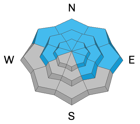 Nowcast - 0500 AM brings us mostly cloudy skies accompanied by trailhead temperatures registering tropically in the 40's, dropping down to the low 30's°F at 10,000'. Sustained, strong winds from the southwest average 30 MPH while cranking out 50 MPH gusts along the high ridges and peaks.