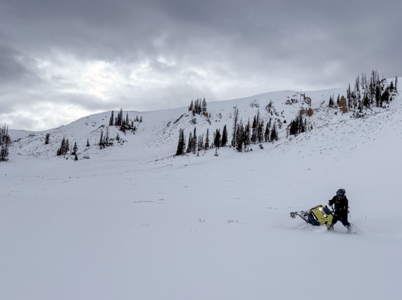Upper elevation meadows are the ticket right now. Yesterday, our math was simple... Mellow slope angles + grassy terrain underneath = All four A-arms making it back to the rigs in one piece.
