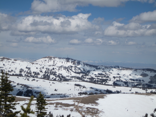 Under a blanket of clouds, temperatures are in the low to mid 30's, though a few hot spots (like Strawberry Divide... below) report overnight lows in the 40's. Southwest winds have ramped up somewhat and are blowing 25-45 mph along the high ridges. Riding and turning conditions are slightly underwhelming and our snowpack has taken a bit of a hit. In the past week we've lost about a foot of snow depth. Cloud cover, warm overnight temperatures, and wind will most likely inhibit today's corn harvest. But wait... there's more! There's a change in the pattern slated for later today through the weekend and winter returns from its hiatus. In the meantime, it's probably a good day to take off and get your taxes done :)