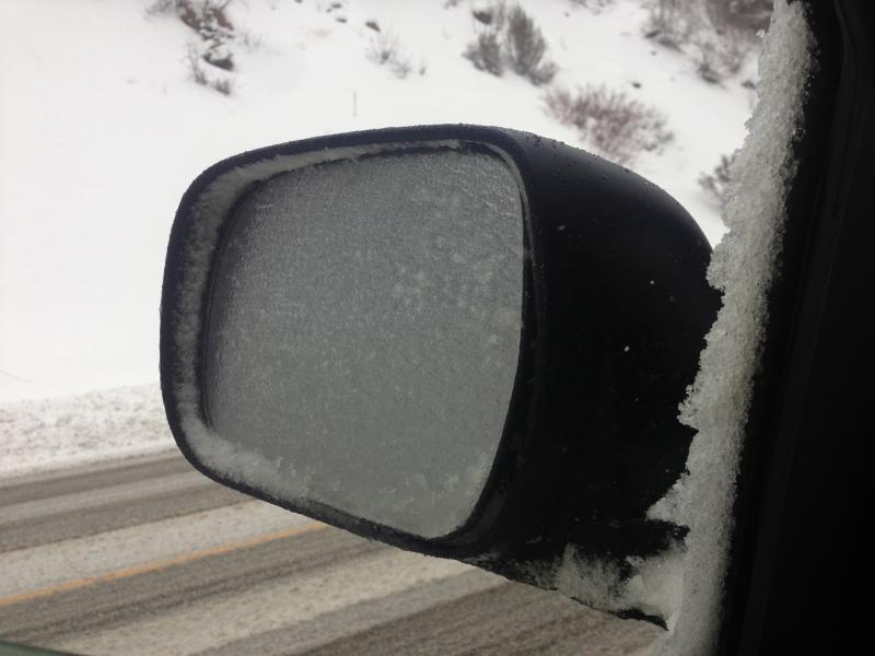 I bumped into Kowboy AKA (Brett Kobernik) at the park in ride and our teams joined forces into Mineral. Kowboy and I came up with a snow rating system at the bottom of our first run. It follows.... If the skiing is worth another lap it gets an automatic 5 out of 10. Yesterday the skiing was rated at 10. Today with the rime event the skiing off the top of the ridge was rated at 3 then as we worked down into sheltered NE facing terrain it bumped up to 5.5. Overall our ski run averaged a 4.25 in ranking and all the groups all decided to head home.