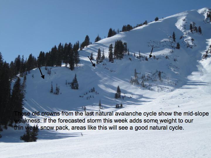 Some of the weakest snow has been found in the mid-slope areas where the snow pack is thin.
