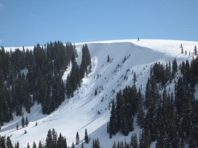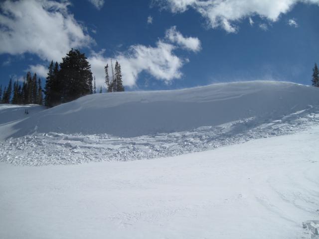 Lots of strong winds today with snow transport onto north thru east facing slopes. The second and third photos show some natural activity from today.