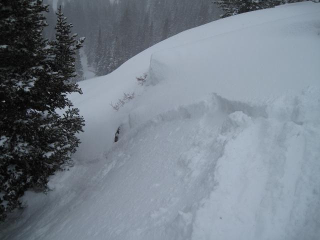 About 10-12" new snow that did not seem overly sensitive today. Some fresh wind slabs, but nothing with much enery or connected slab like properties.