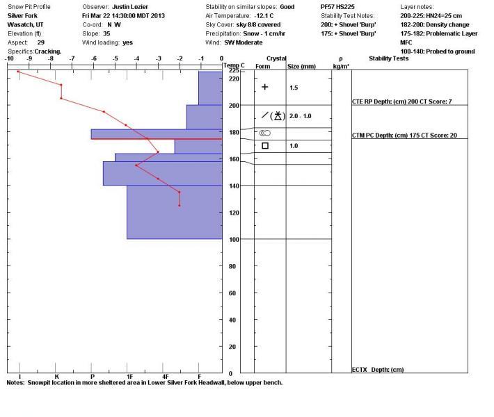 Skinned up Grizzly Gulch, skied East Bowl, skinned up West Bowl (snowpit en route), skied Main Silver, skinned up West Bowl, skied Emma Ridges back into LCC. The skiing was very good everywhere but the high NW (scoured, thin, icy). As expected, the best snow was on Main Silver, and the south was surprisingly good as well.