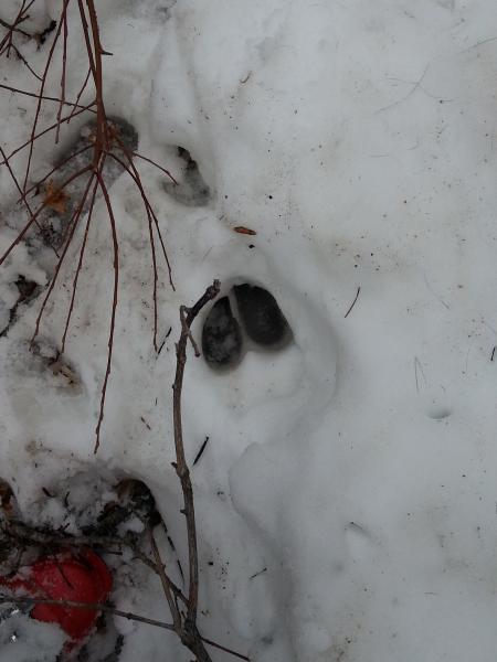 Fresh moose tracks around 6800', with melt water in the tracks.