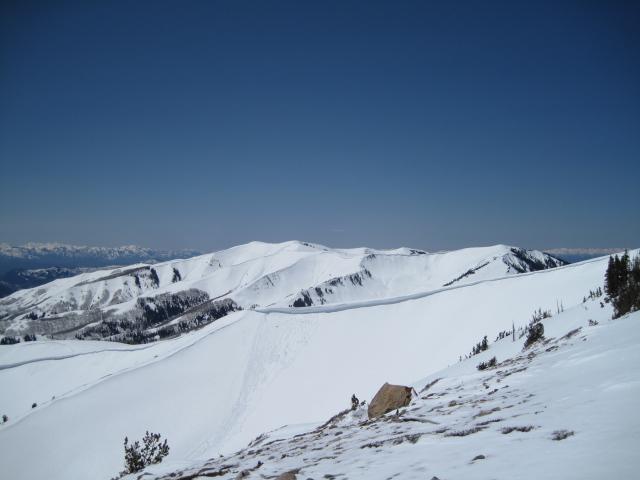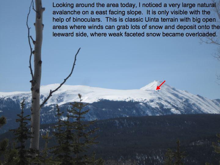 Another very large natural avalanche breaking to the ground was observed in some very high elevation terrain, where thin rocky and weak faceted snow has been all season. The second photo is showing how good the upper elevation snow conditions are right now.