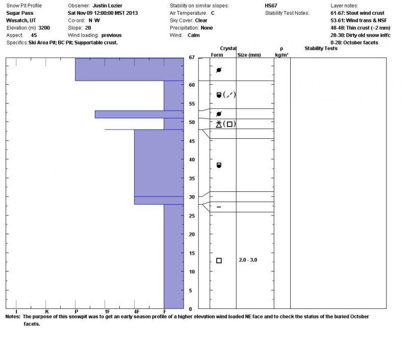 Early season snowpack inspection of a higher elevation wind loaded NE slope.